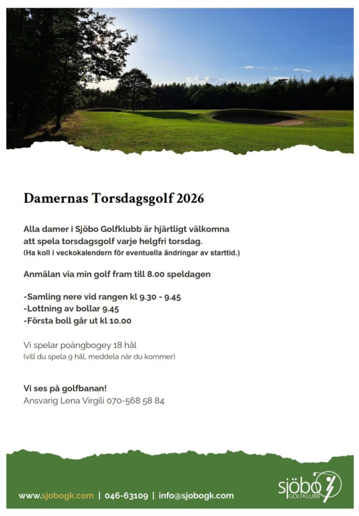 Vårträff – måndag 13 april kl 18.00 – då hela säsongen presenteras, Wistrand golf visar nyheter från shopen och vi får en stor dos inspiration för vår golf under 2026. Anmälan HÄR